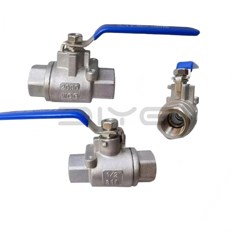 DIYE VALVE บอลวาล์วเกลียว 2PC 2000WOG ผลิตจำนวนมาก เป็นวาล์วควบคุมของเหลวเกรดอุตสาหกรรมอเนกประสงค์ที่มีความต้านทานแรงดันดีเยี่ยม เหมาะสำหรับการใช้งานกับท่อความดันปานกลางและแรงดันสูง มีการใช้กันอย่างแพร่หลายในอุตสาหกรรมที่ต้องจัดการกับสื่อทั่วไปต่างๆ เช่น น้ำ น้ำมัน และก๊าซ โดยให้โซลูชั่นการควบคุมการเปิด/ปิดของไหลที่มีประสิทธิภาพ เชื่อถือได้ และสะดวกสบายสำหรับโครงการต่างๆ ทั่วโลก กระบวนการผลิตทั้งหมดของวาล์วนี้เสร็จสิ้นภายในบริษัท ตั้งแต่การเลือกวัตถุดิบไปจนถึงการตรวจสอบผลิตภัณฑ์สำเร็จรูป เพื่อให้มั่นใจว่าคุณภาพของผลิตภัณฑ์มีความสม่ำเสมอและมีเสถียรภาพ