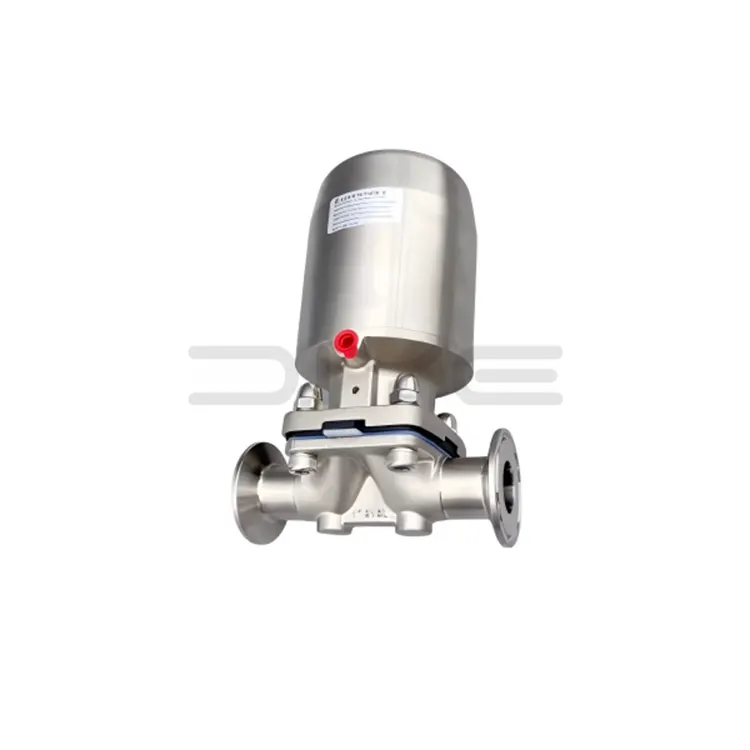 วาล์วไดอะแฟรมแคลมป์นิวแมติกถูกขับเคลื่อนด้วยอากาศอัดที่สะอาด แอคชูเอเตอร์จะเลื่อนไดอะแฟรมขึ้นและลงเพื่อให้สามารถควบคุมการเปิด/ปิดได้: เมื่อไดอะแฟรมถูกกดติดกับบ่าวาล์ว ไดอะแฟรมจะปิด (ไม่มีการรั่วไหล) เมื่อยกขึ้นจะเปิดเส้นทางการไหลเต็มช่อง แอคชูเอเตอร์แบบออกฤทธิ์ทางเดียว (รีเซ็ตอัตโนมัติเมื่อขาดแคลนอากาศ) และแอคชูเอเตอร์แบบออกฤทธิ์สองครั้งมีให้เลือกใช้เพื่อให้เหมาะกับความปลอดภัยและสถานการณ์การสลับบ่อยครั้ง ตามลำดับ