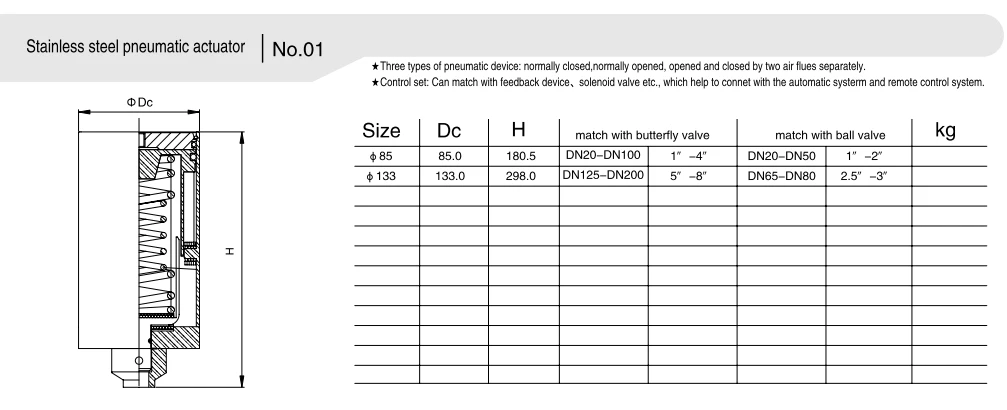 - แอคทูเอเตอร์แบบออกฤทธิ์ทางเดียว: ขับเคลื่อนโดยช่องอากาศเข้าที่ด้านหนึ่ง ส่วนอีกด้านหนึ่งอาศัยแรงสปริงในการรีเซ็ตอัตโนมัติเมื่อการจ่ายอากาศขัดข้อง ช่วยให้มั่นใจได้ถึงการทำงานของท่ออย่างปลอดภัยและหลีกเลี่ยงอันตรายด้านความปลอดภัยที่อาจเกิดขึ้นในกรณีที่ระบบจ่ายอากาศขัดข้อง