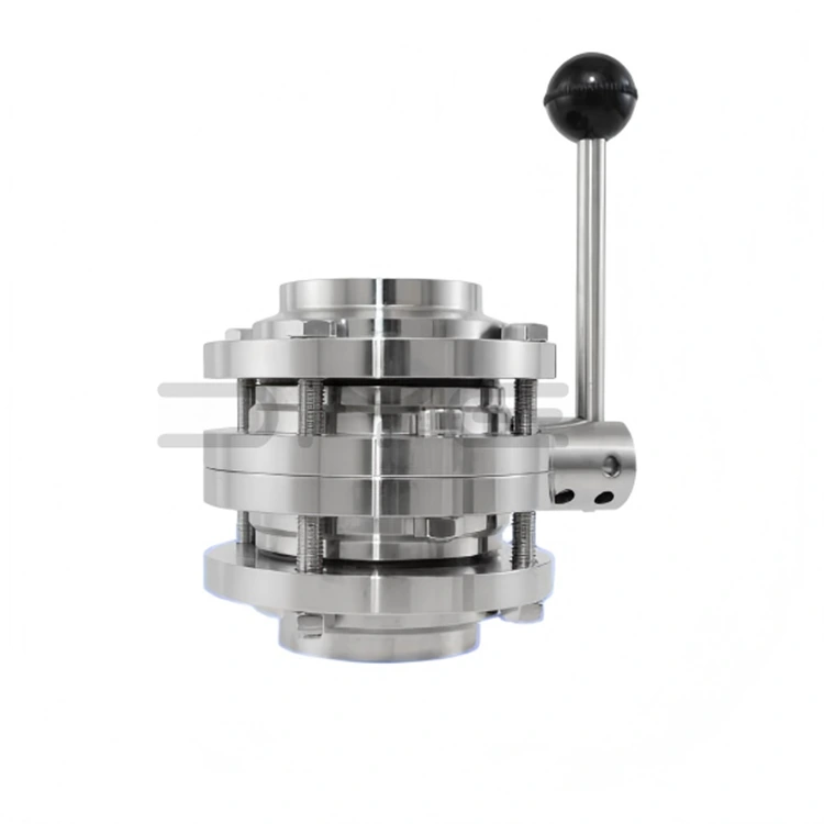 วาล์วปีกผีเสื้อสุขาภิบาล 3 ชิ้นมีโครงสร้างสามชิ้นแบบแยกส่วนแบบคลาสสิก ประกอบด้วยตัววาล์วกลาง หน้าแปลนหรือแคลมป์ที่เชื่อมต่อสองอันทั้งสองด้าน และแผ่นวาล์วภายใน ก้าน และซีล เมื่อเทียบกับวาล์วปีกผีเสื้อแบบรวม ข้อได้เปรียบที่ใหญ่ที่สุดคือการถอดแยกชิ้นส่วนทั้งหมด การบำรุงรักษาและการทำความสะอาดไม่จำเป็นต้องแยกชิ้นส่วนท่อทั้งหมด เพียงคลายแคลมป์หรือสลักเกลียวที่ปลายทั้งสองข้าง ก็สามารถทำความสะอาด ฆ่าเชื้อ และเปลี่ยนชิ้นส่วนที่มีช่องโหว่ได้อย่างทั่วถึง ซึ่งช่วยลดเวลาหยุดทำงานและค่าบำรุงรักษาได้อย่างมาก
